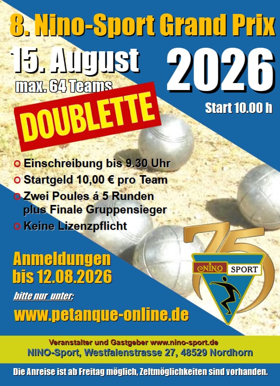 Am 14, 15 und 16. August 2026 findet der 8. Nino-Sport Grand Prix statt.